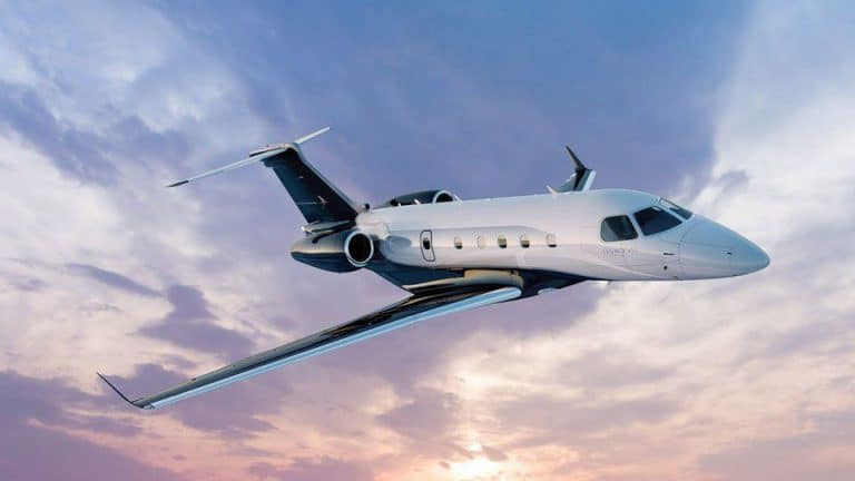 The Legacy 450 long range large business jet aircraft built by Brazilian manufacturer Embraer. It offers fly-by-wire controls in the flight